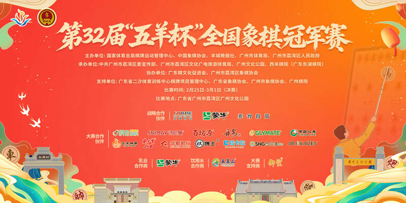 动作中国象棋协会新赛事体系下的首个A级赛事,本届“五羊杯”设公开组、元老组,增设女子组、港澳台组并邀请国际棋手参赛,总奖金破百万元,公开组冠军奖金30万元。初赛已于1月闭幕,15位棋手解围,与外卡选手赖理兄构成公开组决赛声势;吕钦、柳大华等6位棋坛元宿将亮相元老组。